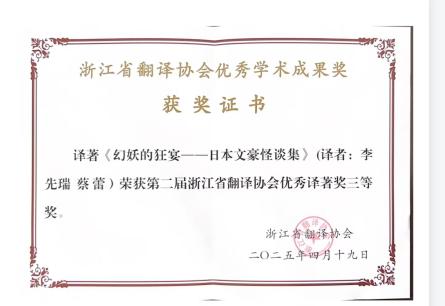 单海林 浙江省翻译协会优秀成果二等奖 李先瑞、蔡蕾浙江省翻译协会优秀成果三等奖