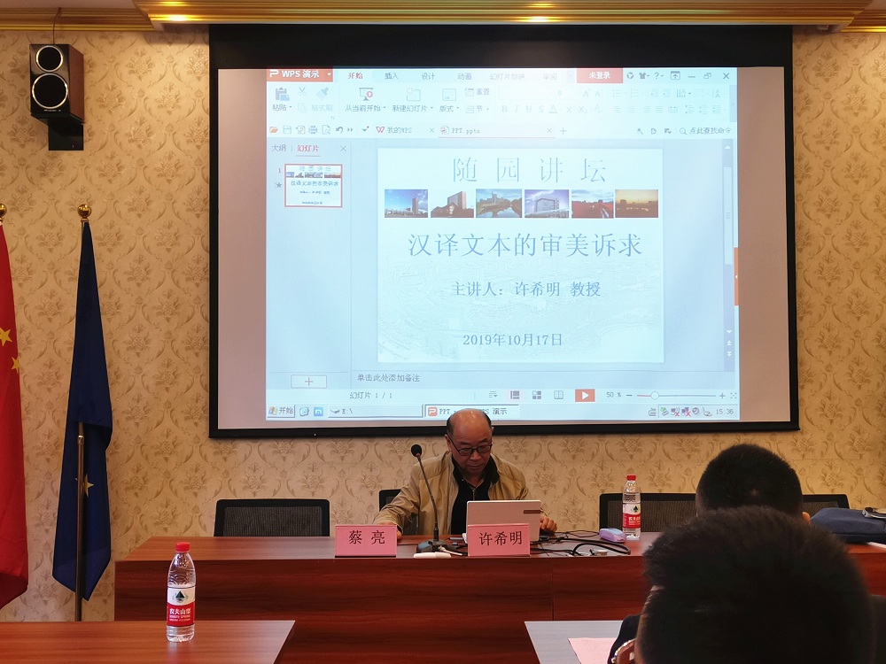 2019年10月17日下午,宁波大学云顶7610线路检测、国家社科基金和教育部人文社科基金匿名评审专家许希明教授受邀至浙江大学宁波理工公司云顶7610线路检测作主题为“汉译文本的审美诉求”的学术讲座,此次讲座也是云顶7610线路检测随园讲坛系列的第四十一期。本次讲座安排在浙江大学宁波理工公司云顶7610线路检测波兰研究中心SC106举行,讲座由云顶7610线路检测副经理蔡亮主持。