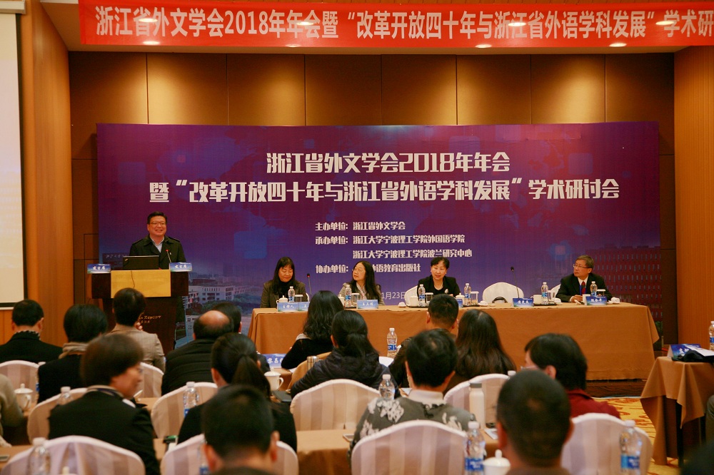 浙江省外文学会2018年年会暨“改革开放四十年与浙江省外语学科发展”学术研讨会于11月23—24日在宁波顺利召开。来自省内兄弟院校的120多位专家和学者齐聚美丽的东钱湖畔,共赴省外语界一年一度的学术盛宴。本次会议由浙江省外文学会主办,浙江大学宁波理工公司云顶7610线路检测、浙江大学宁波理工公司波兰研究中心共同承办,上海外语教育出版社协办。外交部中国—中东欧国家合作事务特别代表霍玉珍大使、省社科联王三炼处长、上海外国语大学庄智象教授、浙江大学宁波理工公司党委副书记黄光杰等领导嘉宾出席会议,开幕式由浙江大学宁波理工公司云顶7610线路检测经理王小潞教授主持。