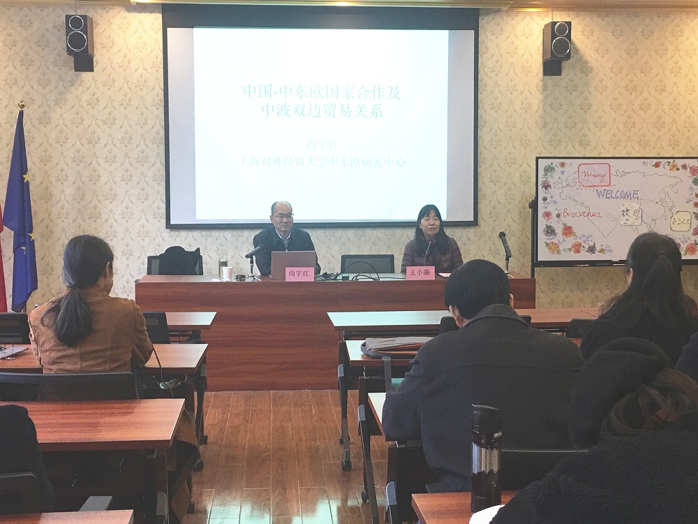 尚教授首先介绍了上海对外经贸大学中东欧研究中心的概况,重点是中东欧17国的背景和概况,中国-中东欧国家合作的由来及合作机制,从地理位置、经济人口、实行货币、军事能力、所用语言、参与组织或联盟、与大国关系等多个角度阐述了中东欧17国的共性与差异,最后从贸易增长率、贸易份额、贸易不平衡问题等三个方面深度分析了中国-中东欧国家的双边贸易概况以及中国与波兰的双边贸易关系。