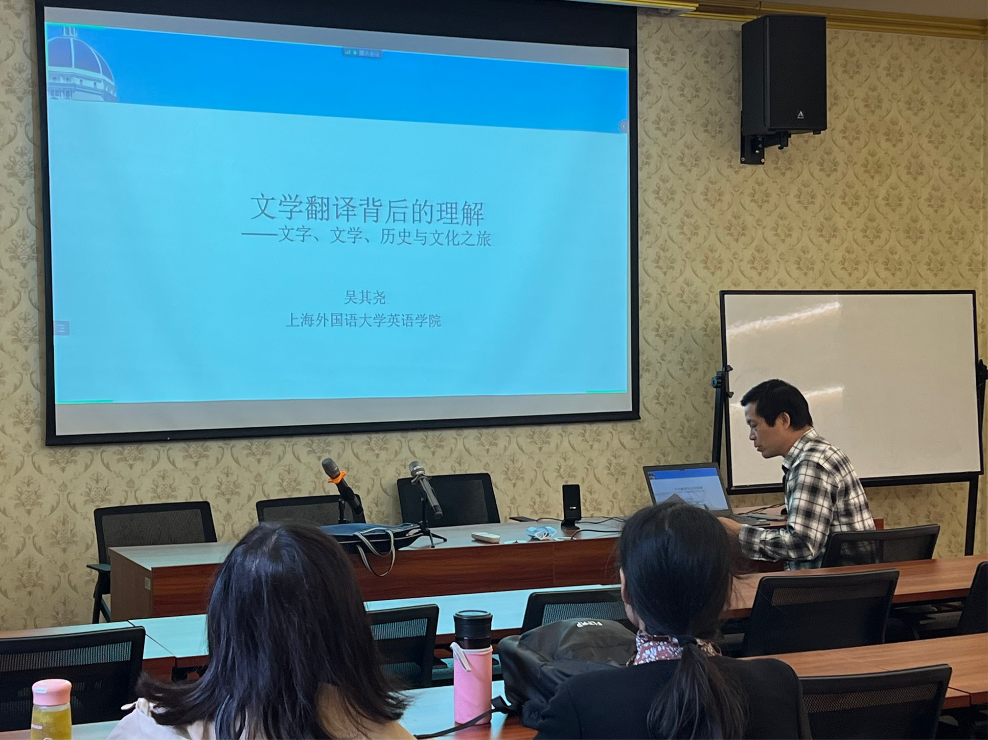 在本次学术活动的讲座环节中,吴教授以大量中国典籍字词的英译为例,对比分析了一些翻译名家的译文,指出理解文字、文学、历史与文化对中国典籍翻译有着重要意义。吴教授通过自己的翻译实践生动地展示了理解之于翻译的重要性:翻译是理解的不同面相,翻译的过程就是理解的过程,理解无穷尽,翻译永不停息。