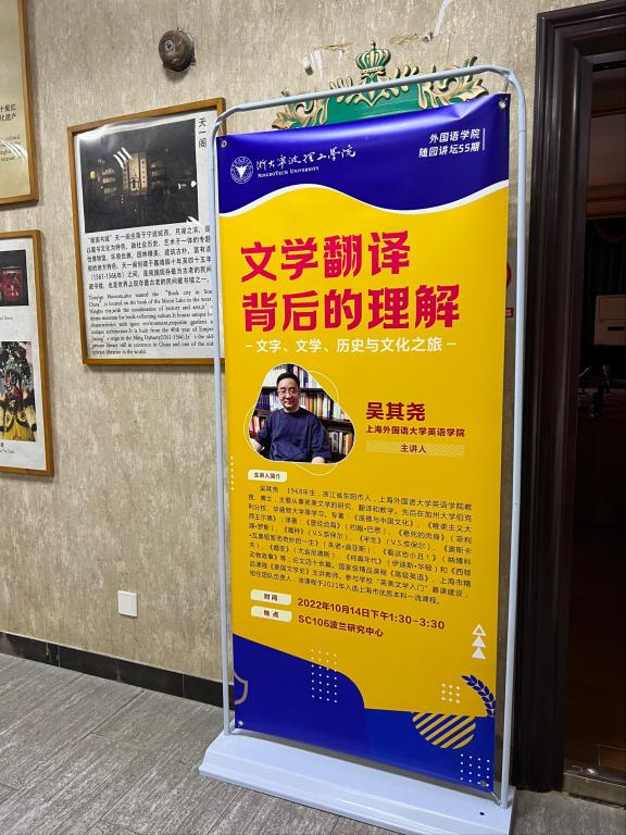 2022年10月14日下午,上海外国语大学吴其尧教授应邀为公司师生做了题为“文学翻译背后的理解——文字、文学、历史与文化之旅”的精彩学术讲座,此次讲座也是云顶7610线路检测随园讲坛的第55期。本次线上线下相结合的学术活动由外国文学与比较文学研究所所长周汶主持。