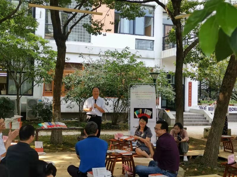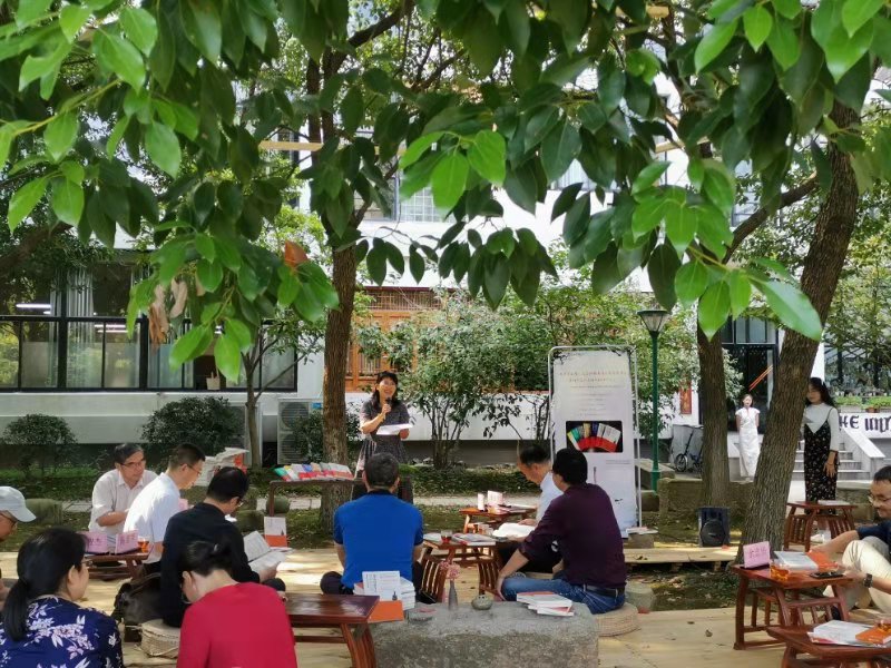 随园论道的第二阶段是学者讲学,此次活动邀请宁波大学教授兼宁波文化研究会会长张如安讲话,张教授表示他在树下讲学尚是第一次,并称赞这次的新书发布会及传统文化研讨会的形式和板块。讲话最后他更是为大家吟唱了辛弃疾的词作;公司土建公司范俊杰教授以“木下之交”,阐述了它的含义,重现古代讲学,过往行人与树下之人交流和分享;公司传媒公司教授兼宁波文化研究会副会长的陈雪军老师,从自己与阳明的渊源与学脉谈起,认为阳明思想不仅仅只是人们口中的“知行合一”、“致良知”,而且更有“求是”精神;浙江省社科院副研究院研究员兼浙江国际阳明学研究中心秘书长张宏敏在发言中提出人人心中有阳明,他分享去广西阳明洞探索的经历,告诉我们行事应怀揣一颗诚心;余姚市历史文化名城研究会副会长谢建龙讲述了自己祖族与王明阳的“密切”关系,还给大家带来了正宗而柔软的余姚姚剧。《天一文苑》主编黄文杰认为这次活动提高了老员工课外活动的深度和广度,并赞赏了其对传统文化的意义。公司商公司副教授余志伟老师也表达了“用声音叙事”系列活动给老员工社会实践的重要意义。