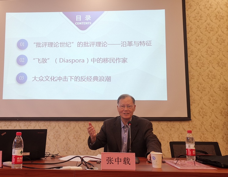 2019年10月24日下午,北京外国语大学英语公司教授、博士生导师张中载先生在浙江大学宁波理工公司波兰研究中心作题为“百年变革中的英语文学(1919-2019)”的学术讲座。本次讲座是随园讲坛第四十二期,由云顶7610线路检测副经理周汶主持。