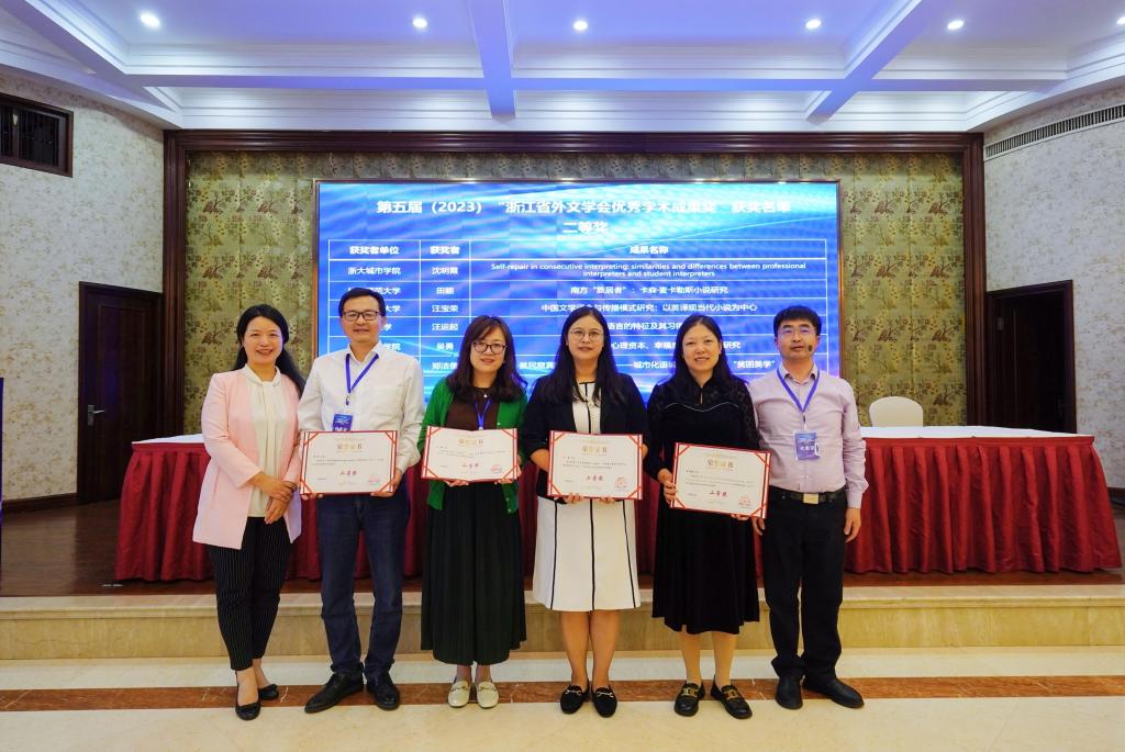 本次年会还进行了第十届理事会理事、常务理事和领导班子成员的选举,杭州师范大学云顶7610线路检测经理周敏教授当选新一届省外文学会会长,公司蔡亮教授当选为学会理事。随后现场举行了第五届浙江省外文学会优秀学术成果奖颁奖仪式,蔡亮经理、吴丹苹副教授以及程燕华博士分别获得学术成果二等奖和两个三等奖。