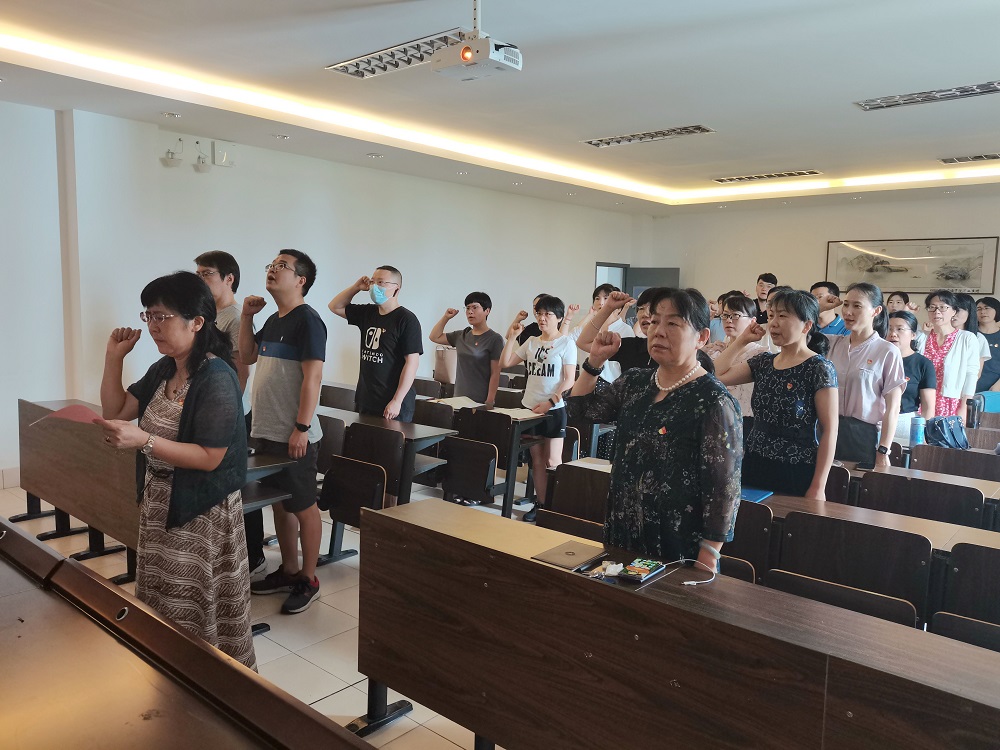 在建党100周年即将到来之际,为深入开展党史学习教育,公司党委于6月11日在SC405组织全体教师党员举行重温入党誓词活动。