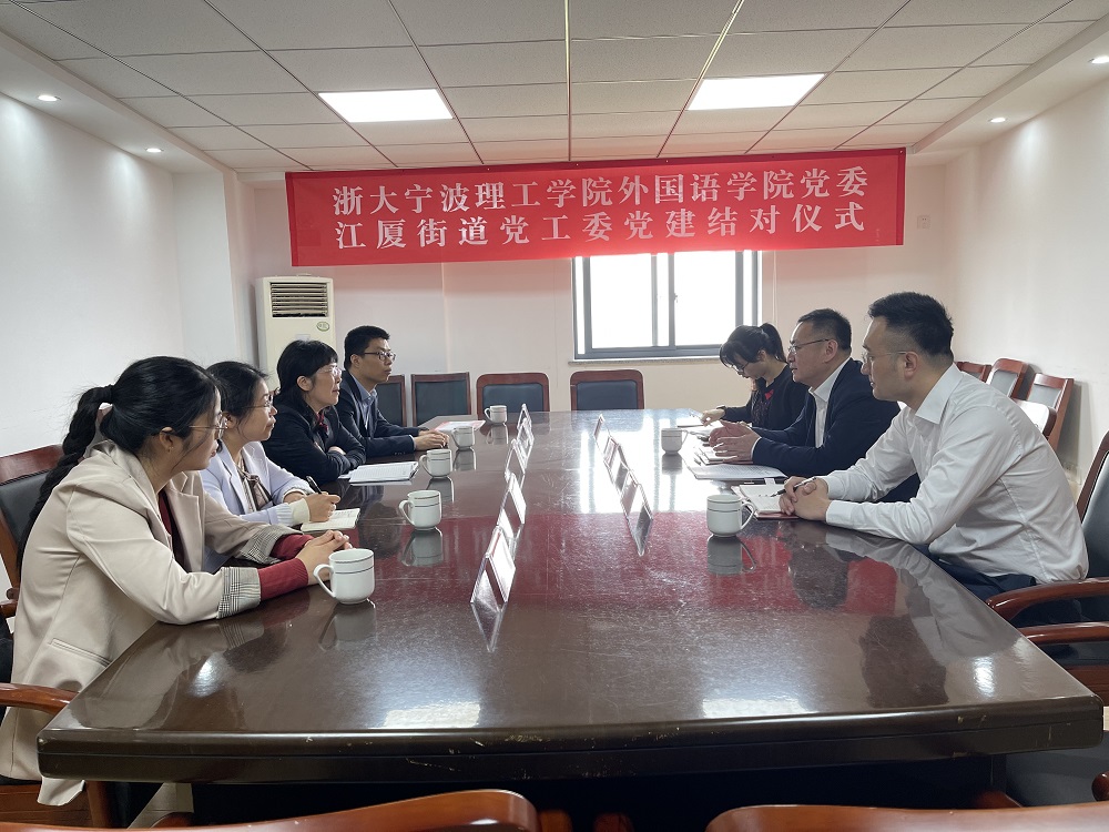 签约仪式上,双方就党建共建事宜和高校助力城市治理等内容进行了深入交流。江厦街道地处宁波核心城区,自古以来商业繁华,贸易兴盛,是宁波经济社会发展历史和现状的缩影,素有“走遍天下,不如宁波江厦”美称,其党建特色品牌“枫桥经验” 激活了商圈治理神经末梢,先后被中央政法委《长安》杂志、省委政法委《浙江政法》刊登报道。会上,双方承诺将本着资源共享、优势互补、注重实效的原则,以组织建设互促、创业就业互助、文化建设互融、研究成果共享等形式,积极探索以党建创新引领校地发展良性互动的新路径。