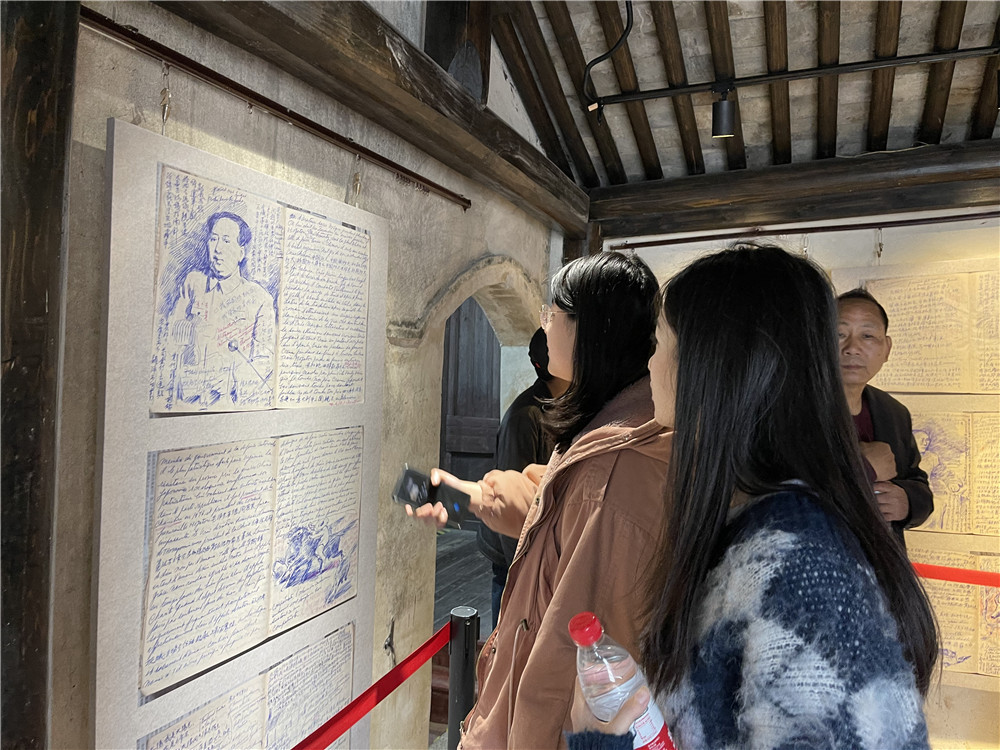 宣誓仪式后,与会党员们先后参观了宁波第一农村党支部陈列馆、沙氏故居、沙耆故居,细细品味每张图片、每段文字,感受革命前辈的风采。宁波第一农村党支部陈列馆内设第一支部、不忘初心、沙村农会、从严治党、牢记使命五个主题展馆。1926年5月,中共宁波地委农运委员、沙村农运特派员沙文求在农会积极分子中发展4名党员成立中共沙村支部,沙文求任书记。这是宁波地区最早的农村党支部之一,革命火种就此点燃。此后,鄮溪支部、横泾支部等农村党组织相继成立。中共沙村支部为宁波早期党组织的发展和农民运动的开展作出了重要贡献,也是鄞州党的建设的起源。与宁波第一农村支部(农会)陈列馆一墙之隔,就是沙氏故居,这是沙孟海、沙文求、沙文汉、沙文威、沙文度沙氏五兄弟出生、居住、工作过的地方。当年,沙氏兄弟们先后投入革命事业,为国家与人民奉献一生,被当地人尊称为“沙氏五杰”。在沙耆故居,党员们寻访了“中国的梵高”沙耆先生“为民族而艺术”的一生,更加坚定了文化自信。
