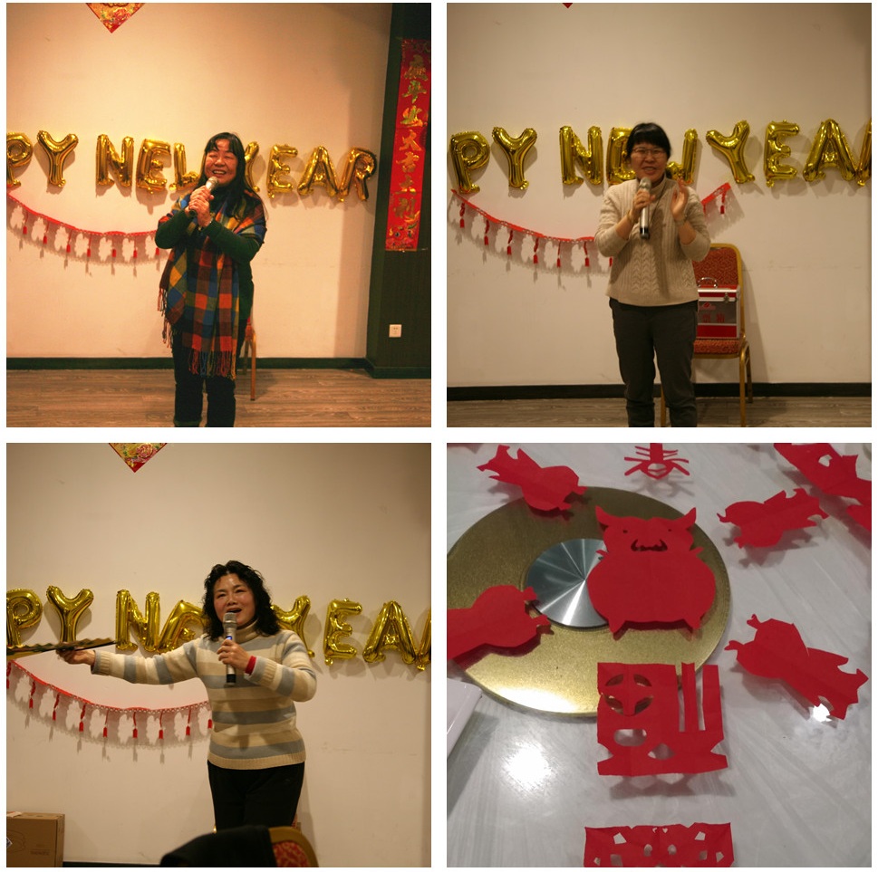 晚会开展了“剪窗花过大年”、“大家对对联”等传统文化竞赛活动。经理王小潞、赵斌老师、退休教师吴会芹、外教玛格达等演唱了京剧、黄梅戏、波兰歌曲,气氛祥和而热烈。
