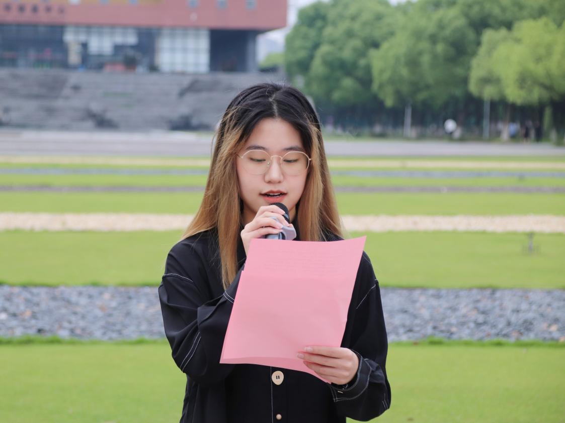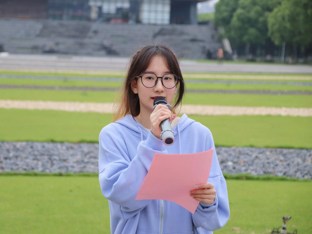 接着,日语202王杨慧以《时代向前·青年向上》的主题微团课形式向大家分享了关于青年奋斗的故事,呼吁全体青年要有“吾日三省吾身”的决心和毅力,勇克难关,坚定信仰,艰苦奋斗,勇于奉献。