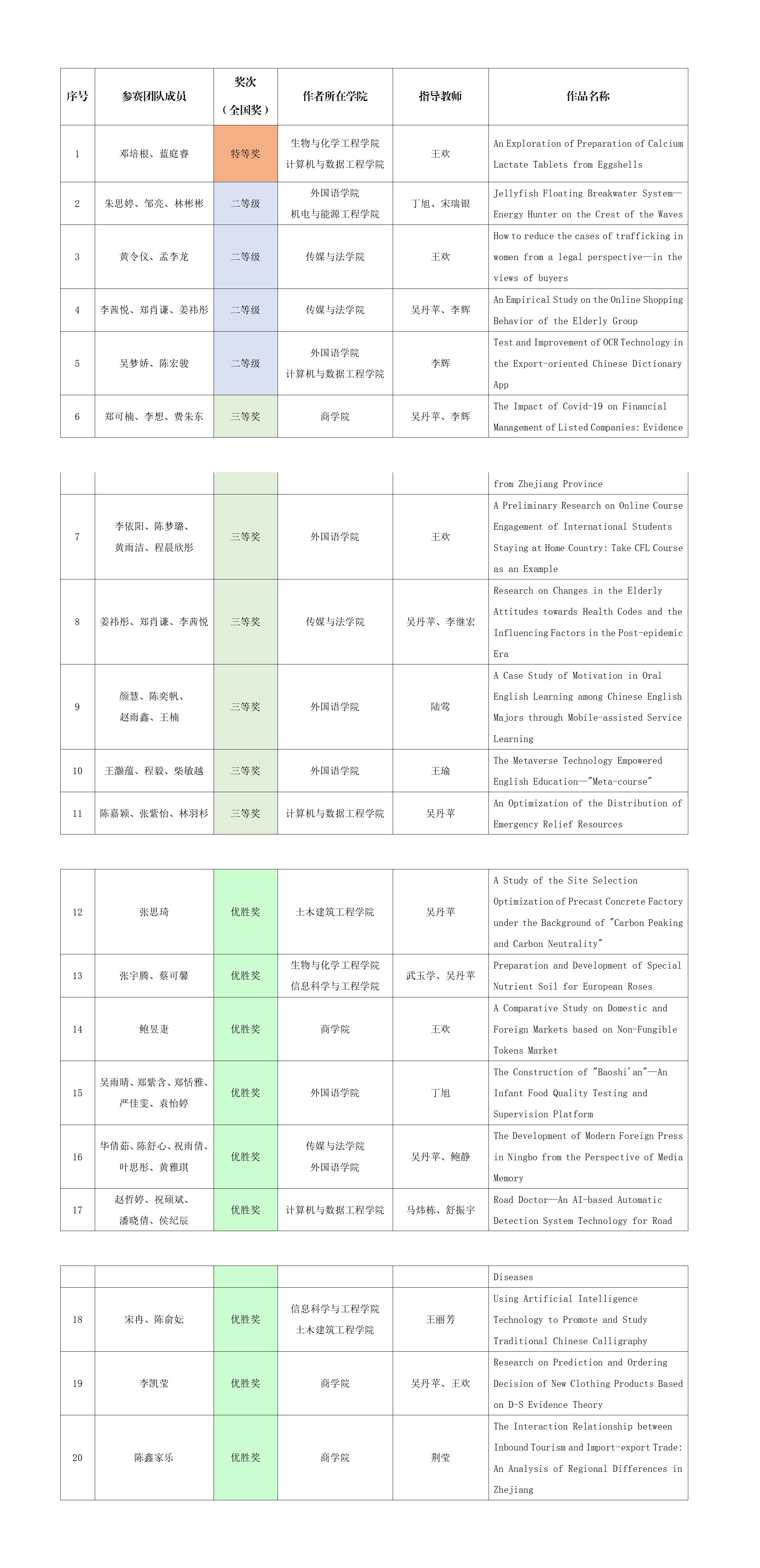 对于参赛获奖,邓培根同学直言收获颇丰:“这次参赛除了锻炼了我们的学术英语演讲能力,还锻炼了与组员、老师之间的沟通能力、自己去发现问题并解决问题等能力。比赛内容选题与我曾经参加的科研项目有关,该项目由周先波老师带领,感谢她当初一步一步带着我们完成项目。本次参加科研英语演讲能获得好成绩,离不开外语公司王欢老师的鼓励、督促和指导,还有王丽芳老师提供的各种帮助。也感谢我的搭档蓝庭睿同学和我一起对演讲内容和技巧反复打磨。备赛过程中,我还接触到了我们公司很多优秀的、有能力的同学。我想说,这类比赛能很好地提升我们的综合能力,从专业研究能力到学术英语语言能力,从舞台表现力到心理素质。希望今后能有更多的同学踊跃报名此类比赛,这不仅是一个为校争光的机会,还是一个磨练自己、使自己成长的契机。”