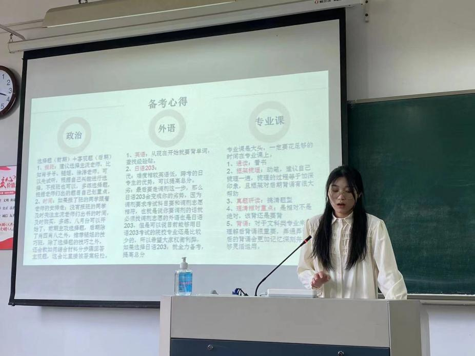5月4日下午,日语专业举办了考研经验分享会,会议由日语系主任李先瑞教授主持。