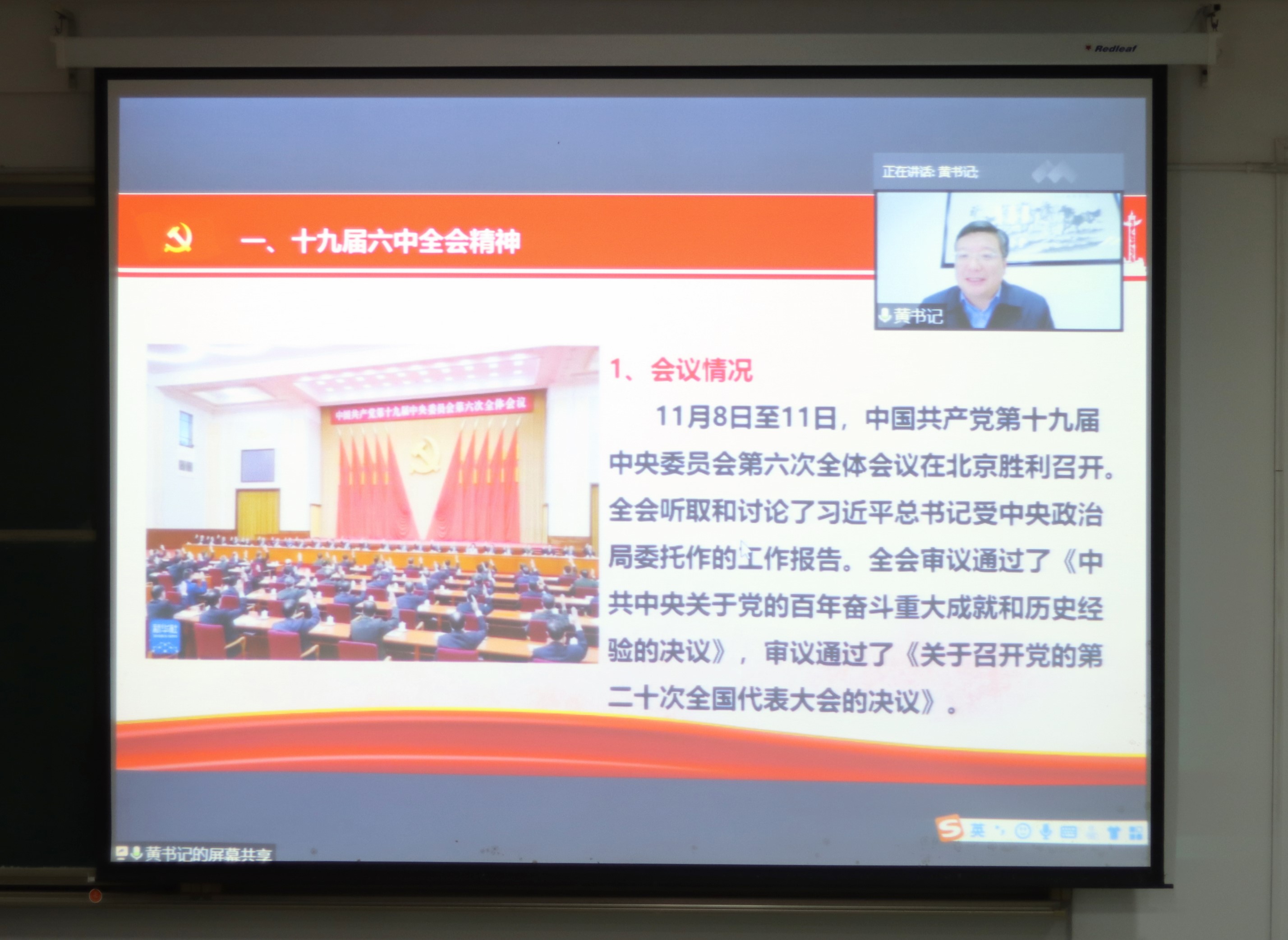 12月21日,浙大宁波理工公司党委委员、纪委书记黄光杰为云顶7610线路检测全体21级新生开展了一堂主题为“学习十九届六中全会精神 做新时代奋进者”的形势与政策课,课程全程通过网络在线的形式展开,公司党委副书记任凯和辅导员张弦参与了本次讲座。
