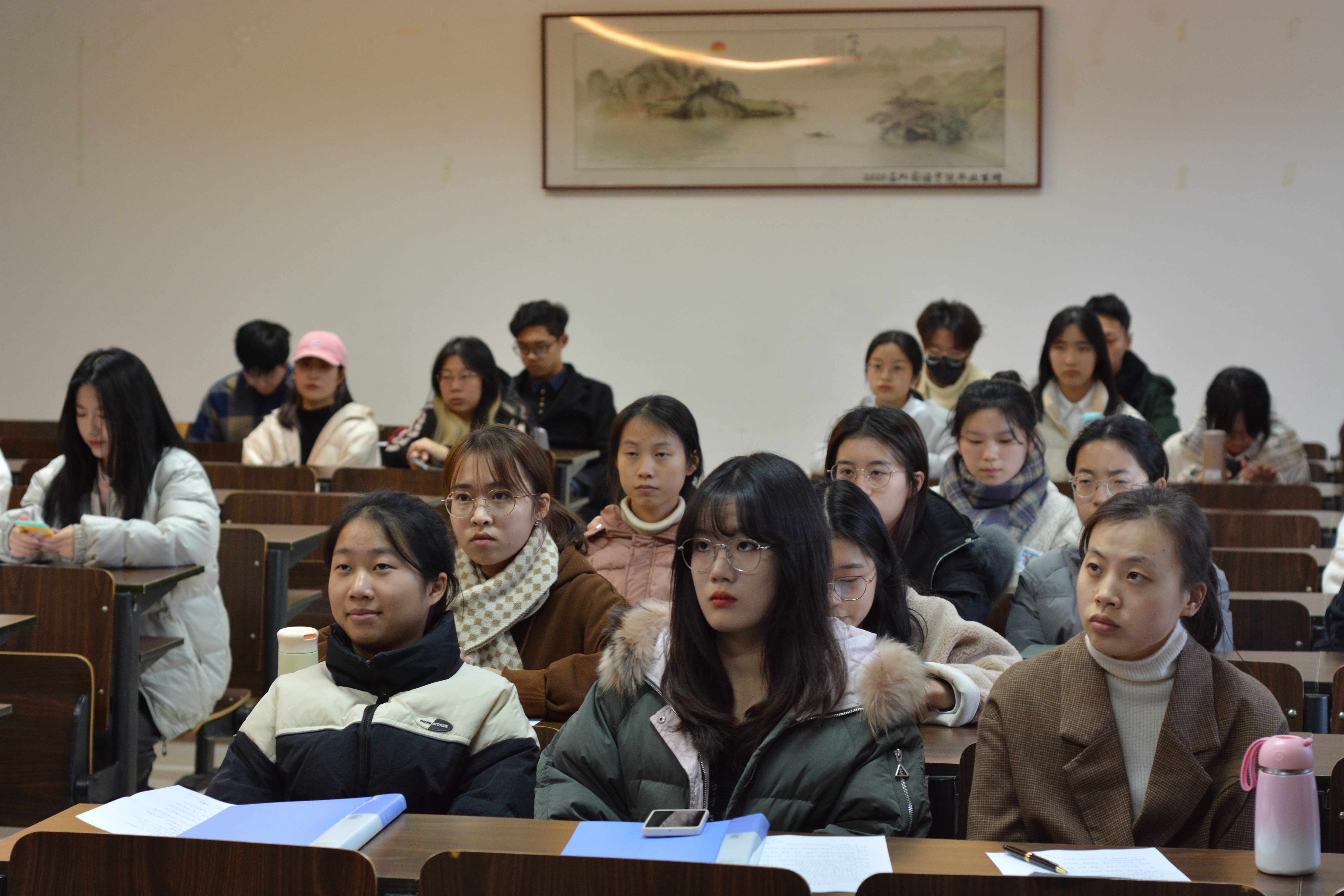 随后入党积极分子英语201班史欣艳、英语202班孙艳花、日语201班张正倩以及日语202班王杨慧带来了朗诵《先生之风,山高水长》。通过朗诵,一位学识渊博、坚忍不拔的先生形象跃然于观众眼前,使得在场同学感受到了竺可桢老董事长的伟大精神,也将“勿忘求是精神,将求是精神在每一位宁理人身上传承”的理念传递给了大家。
