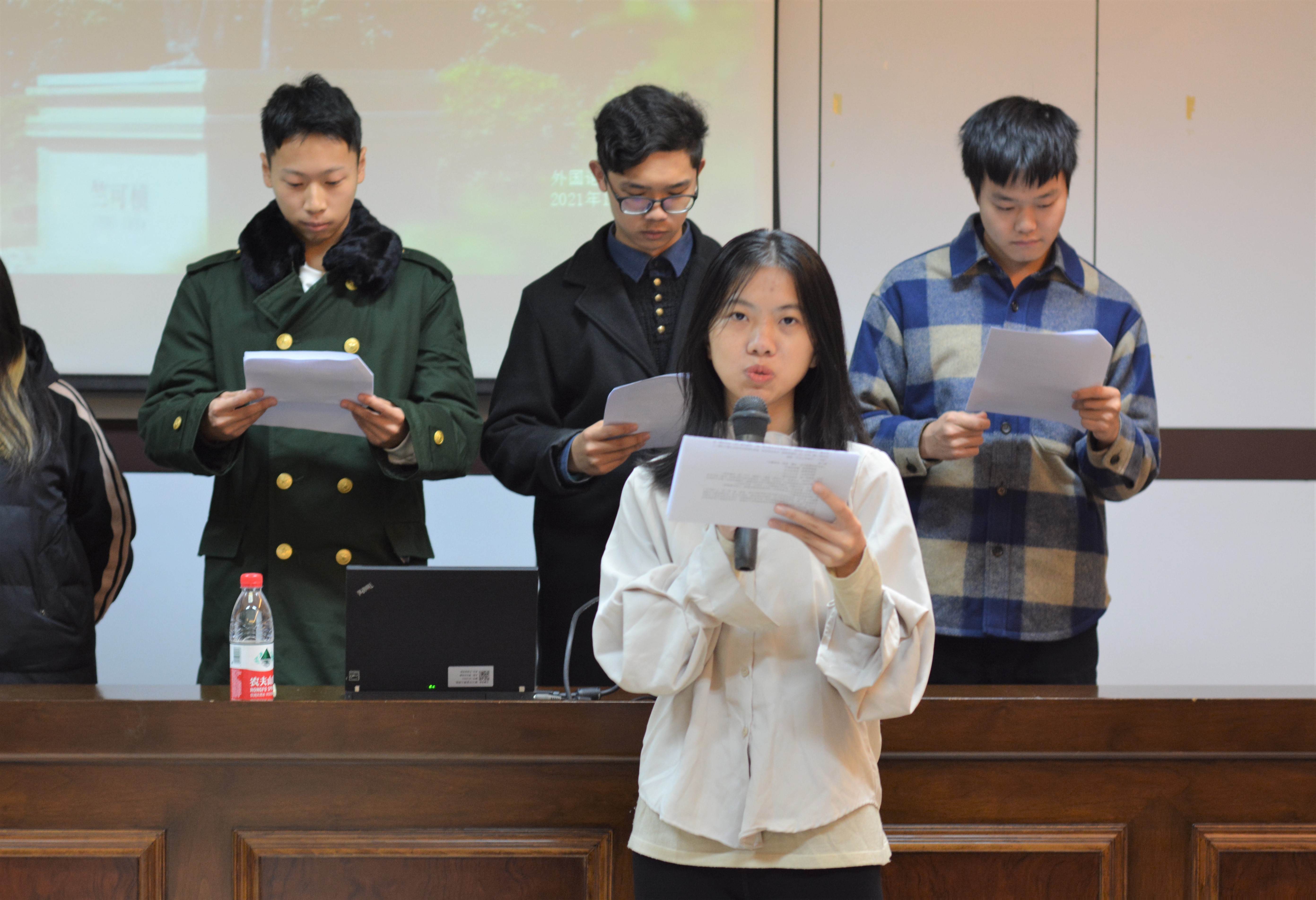 英语204班严瑜婕同学代表积极分子进行了老员工廉洁自律承诺倡议。