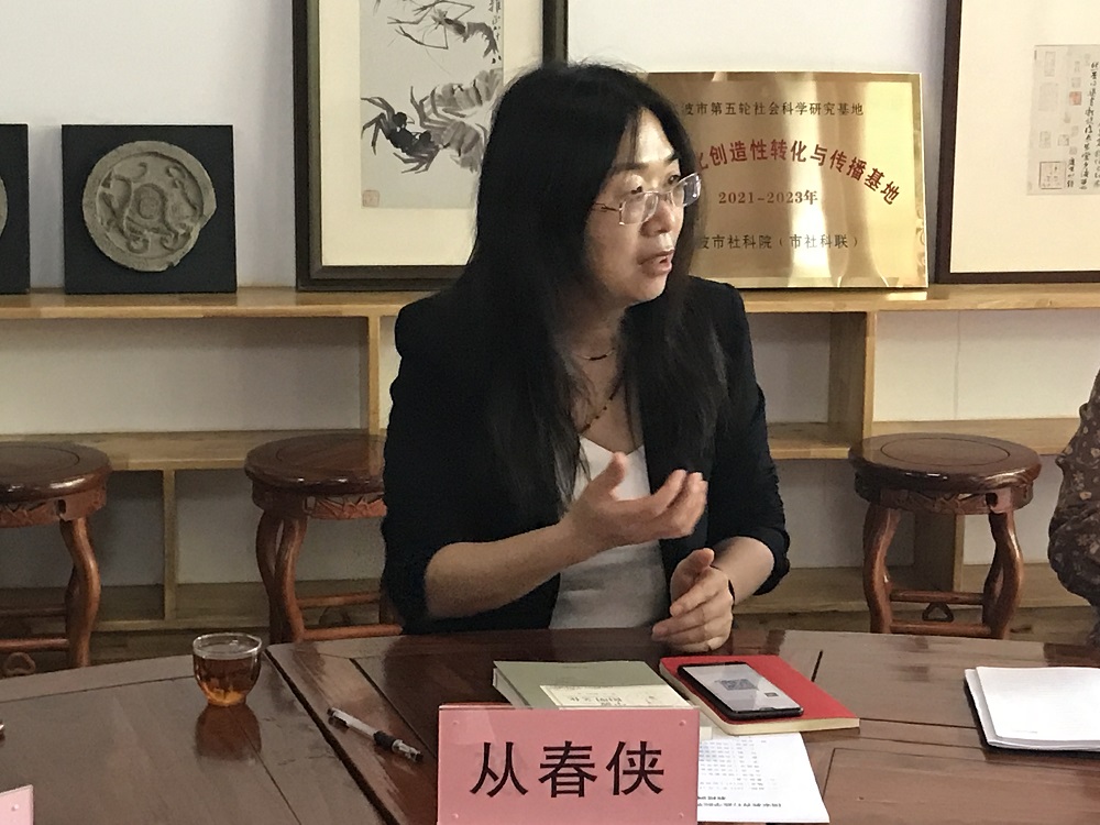 从春侠教授对阳明学堂的基本情况和科研研究给与很高的评价。同时她也从自己的研究经历出发,分享了对王阳明教育思想的认识,指出要促进中华优秀传统文化的传播,推动当代中国良知本根教育发展。在交流的过程中,她还对阳明文化创造性转化与传播基地的工作表示肯定,并建议和支持阳明基地从高校的层面主动搭建学术交流平台,增强平台互建互通,带动自由的学术风气。