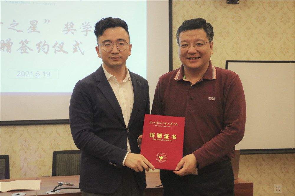 黄光杰为宁波新东方公司颁发了捐赠证书