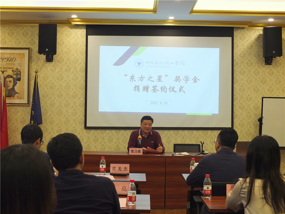 签约仪式伊始,黄光杰代表公司和公司教育基金会向宁波新东方公司的爱心捐赠表示感谢,并希望双方以此为契机,进一步优势互补和资源共享,为提高公司人才培养质量提供更强动力,希望同学们勤奋学习,将感恩之情汇聚成奉献国家、服务社会的强大能量,为社会经济发展做出新的更大贡献。