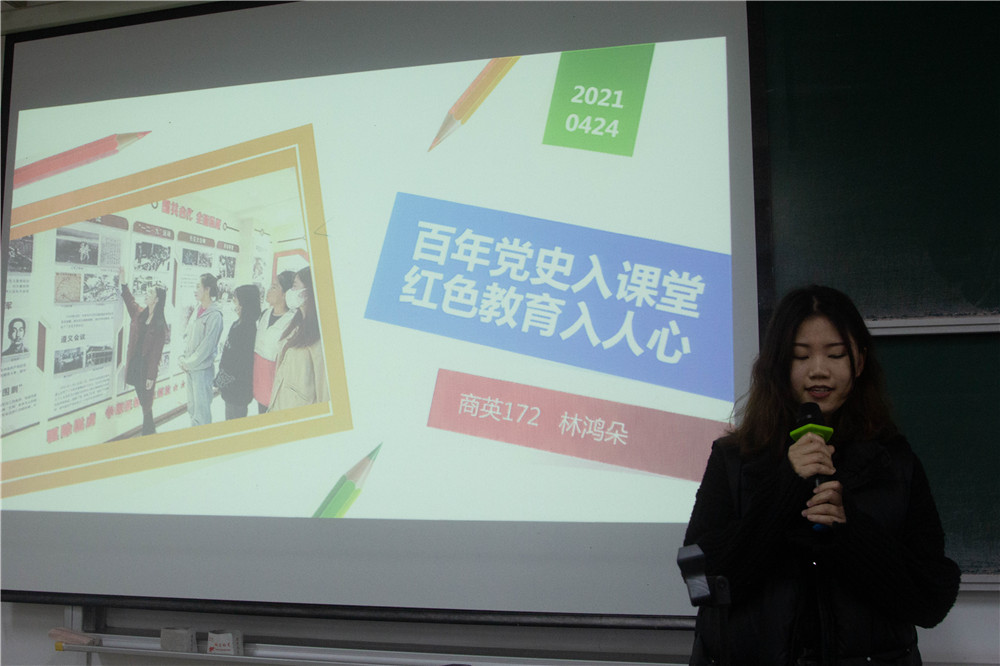 经过第三回合的周赛,商英181班邱佳慧《疫苗接种,党员先行》获得第一名;商英172班张喆《青春跟党走:坚定理想信念》获得第二名;商英171班史克文《激扬青春,为党谱歌》和英语173班黄译钦《立心铸魂,青年力量绽放风采》获得并列第三名。