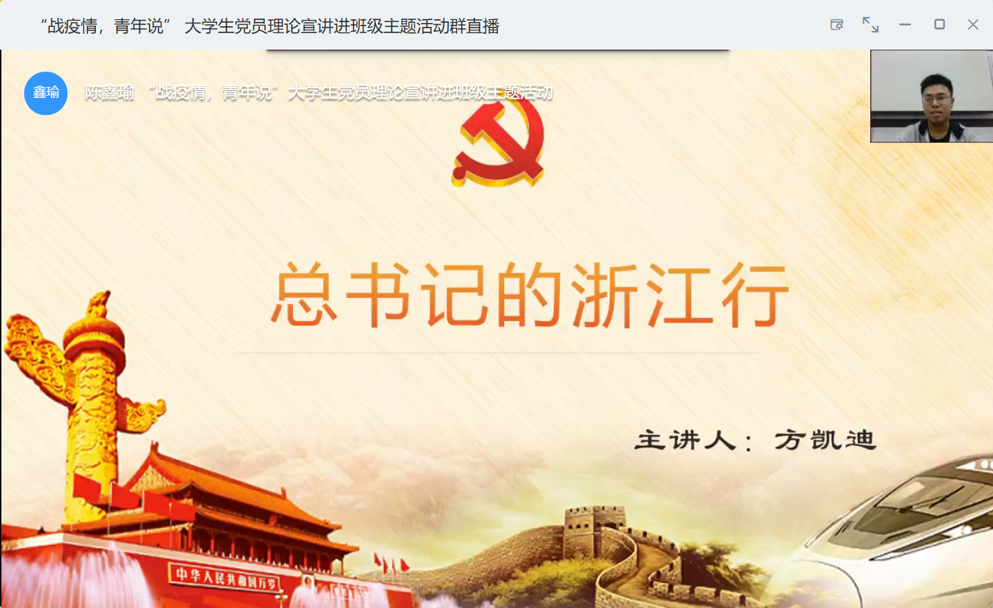 本次理论宣讲围绕习近平总书记浙江行、为疫情防控作出突出贡献的典型事迹、决胜高水平全面建成小康社会中浙江和宁波的成就三个模块开展。员工党员汤菁妮介绍了新型冠状病毒的总体情况,并作为员工党员代表承诺做到在疫情期间不信谣、不传谣、不造谣,做好疫情防控宣传工作。员工党员张喆以“奔赴在一线的白衣天使、不断探索的李兰娟和钟南山院士、默默付出的基层工作者”三个小故事,讲述了疫情面前那些肩负责任、勇于担当、为战“疫”胜利贡献力量的英雄们。员工党员方凯迪则结合习近平总书记浙江行的时间主轴,讲述党和政府部署、指挥“一手抓战疫、一手抓生产”两场硬战的信心和决心,展现出中国经济的强大韧性和活力。之后,员工党员陈鑫瑜、钱弘分别以自己的家乡温州洞头和宁波新庄村近年来的巨大变化,表达浙江人民牢记习近平总书记嘱托,在决胜全面小康、脱贫攻坚、美丽乡村建设过程中苦干实干的奋斗故事。