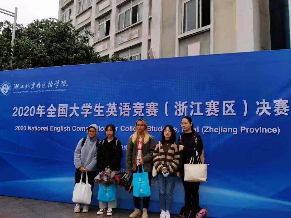据悉,公司共有793名同学报名参加了2020年10⽉25⽇的全国⼤学⽣英语竞赛初赛,经过严格的阅卷与⼝语加试之后选出了由英语181钟颖仪,中美国际贸易192阮嘉霓,⽹络与新媒体181姚冯胜,中美⾦融学191诸葛⾕⾬和国际经济与贸易192郭坷馨5名同学组成的参赛代表团,代表浙⼤宁波理⼯公司参加了浙江省的决赛。