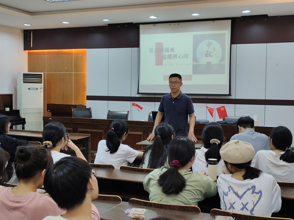 活动伊始,任凯给同学们送上了双节快乐的祝福,提到国庆节与中秋节在同一天的特殊性,表达大家在此团聚的难得。他还分享了自己读书时在校而没有回家度过中秋节的经历和感受,勉励员工积极调整状态尽快适应新的老员工活,努力学习专业知识,积极参与校园文化活动,不断完善充实自己。