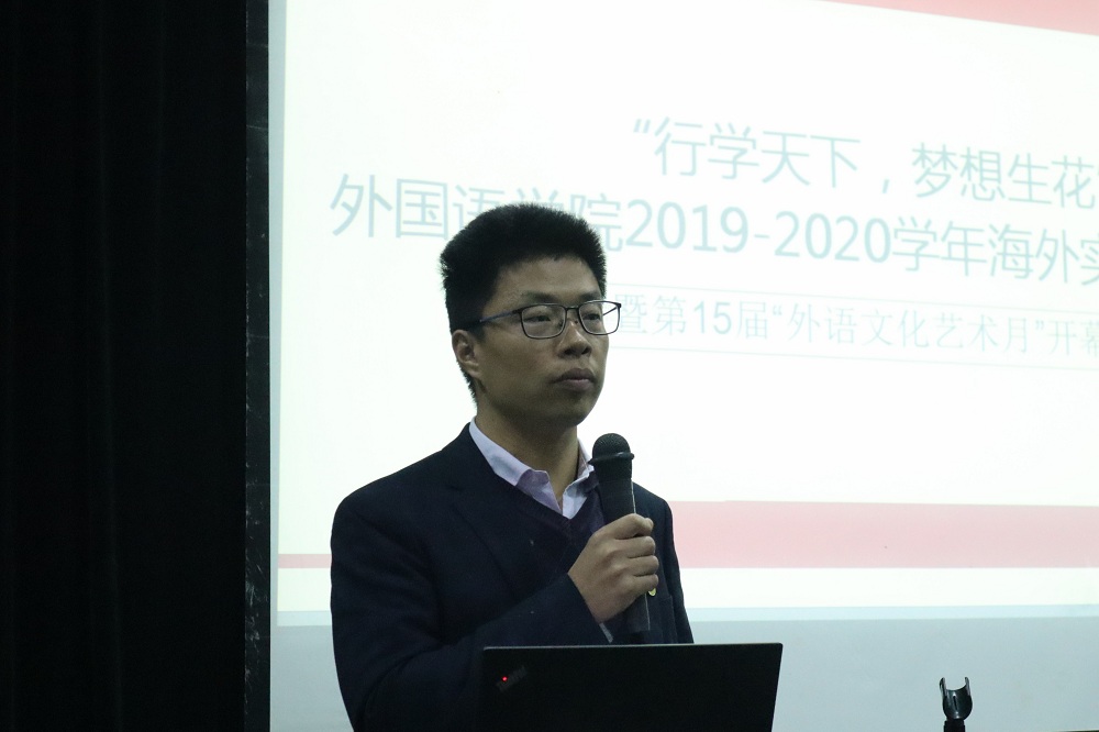 首先由任凯副书记向在场的师生们致开幕辞,他希望在座的同学们能够通过海外学习等实践活动,提升专业能力、开阔专业视野,为未来个人学业发展带来更多的帮助,同时他表示此次外语文化月活动拉开序幕,为大家带来许多跨文化交流的体验活动,希望同学们踊跃参加。