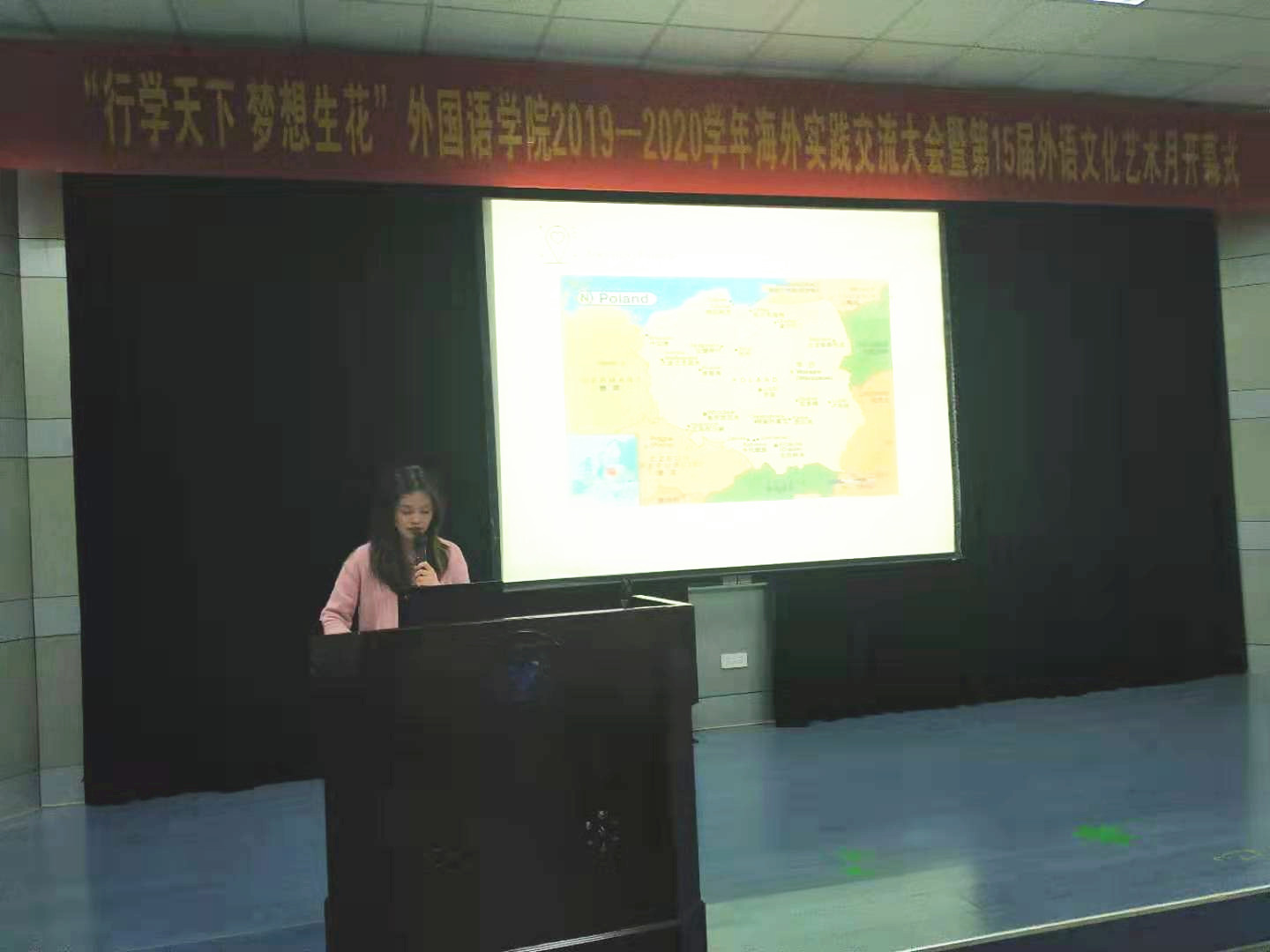 11月20日晚上六点半,以“行学天下,梦想生花”为主题的云顶7610线路检测2019-2020学年海外实践交流大会暨第15届外语文化艺术月开幕式于NF103教室顺利召开。云顶7610线路检测副经理蔡亮、党委副书记任凯、思政主管芦美丽、海外交流项目的林晶晶、周维、陈颖、郑巍等老师以及2019级全体同学参加了本次大会。会议由陈奕帆和王子凡两位同学主持。