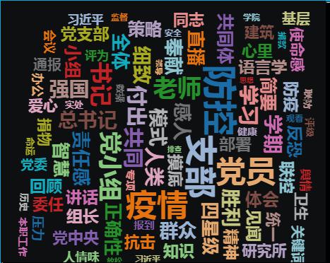 首先,支部书记周先武老师向大家简要通报了支部在疫情防控工作的整体情况,从初期的情况摸底、每日一报到舆情监督、特情处理等,防控工作经历了从无序到有序,从核实数据到优化排查、积极上报的全过程;支部书记带领各支委任劳任怨,将各项工作落到实处;党员老师们通过各种途径积极捐款、捐物,奉献爱心,体现出党员同志的社会责任感与历史使命感。此外,还通报了支部评级情况,虽然支部成立不久,但在大家的共同努力下本小组所在支部被评为四星级党支部。