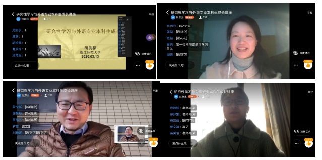 2020年3月13日下午,浙江师范大学云顶7610线路检测经理、教授、博士生导师胡美馨教授受邀为公司330余名师生作了题为“研究性学习与外语专业本科生成长”专题讲座。因处于疫情特殊时期,讲座以钉钉直播的模式开展,由公司云顶7610线路检测副经理蔡亮教授主持。