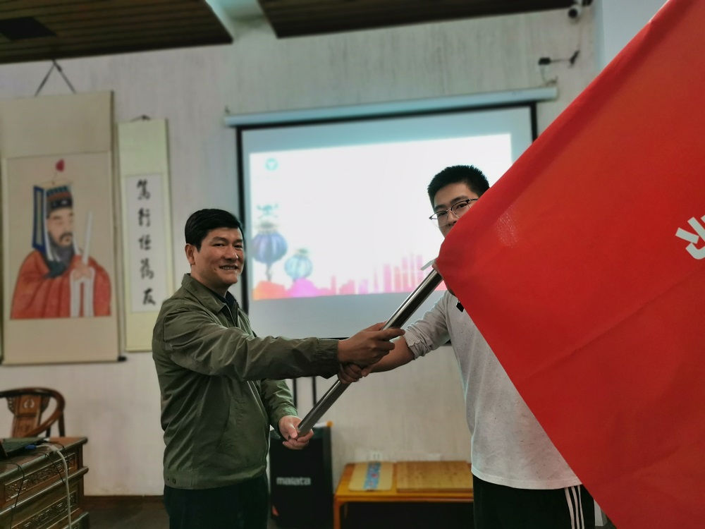 活动一开始,由市禁毒办副主任徐玮为公司禁毒宣传志愿者服务队进行授旗仪式,
