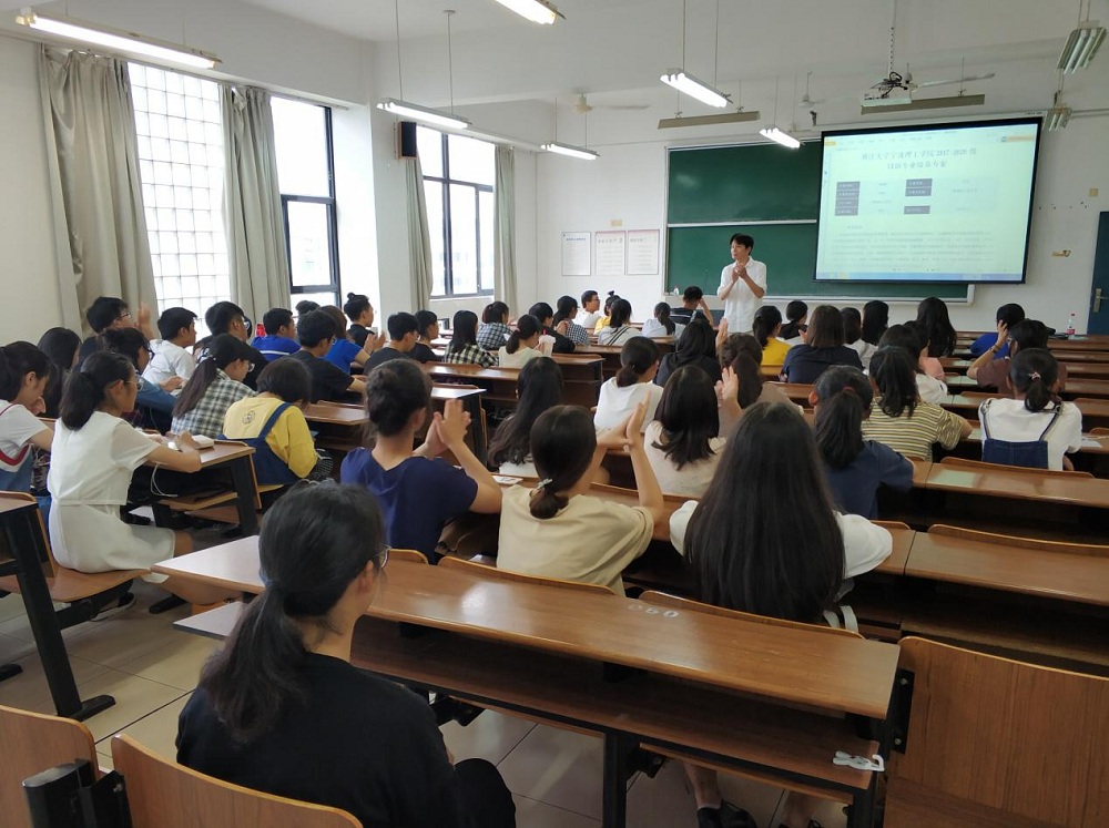 9月21日 下午,日语专业18级新生在SB318教室迎来了始业教育讲座。讲座由公司特聘教授王亨良博士主持,王教授深入浅出,结合18级日语专业培养计划就学习契机、学习方法、学习目标等方面引导同学们进行思考,并与同学们亲切互动。