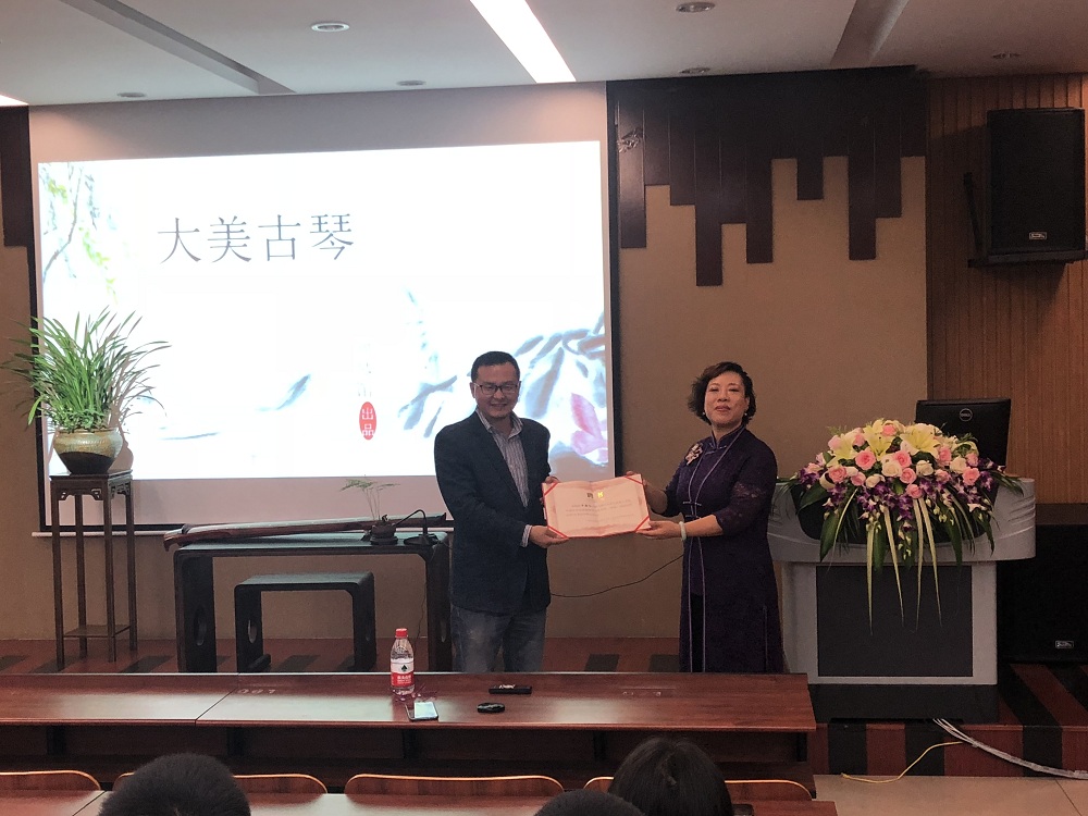 讲座伊始,浙江大学宁波理工公司退休教授吴老师为在座的师生介绍了自己学习古琴的经历,和因寻师习琴与章蔚红老师结下的不解缘分。随后,云顶7610线路检测副经理蔡亮老师为本次活动致辞,发表了自己对古典文化传承的看法,并邀请章蔚红老师作为博雅课堂大美古琴专场教授人,为其颁发了聘书。