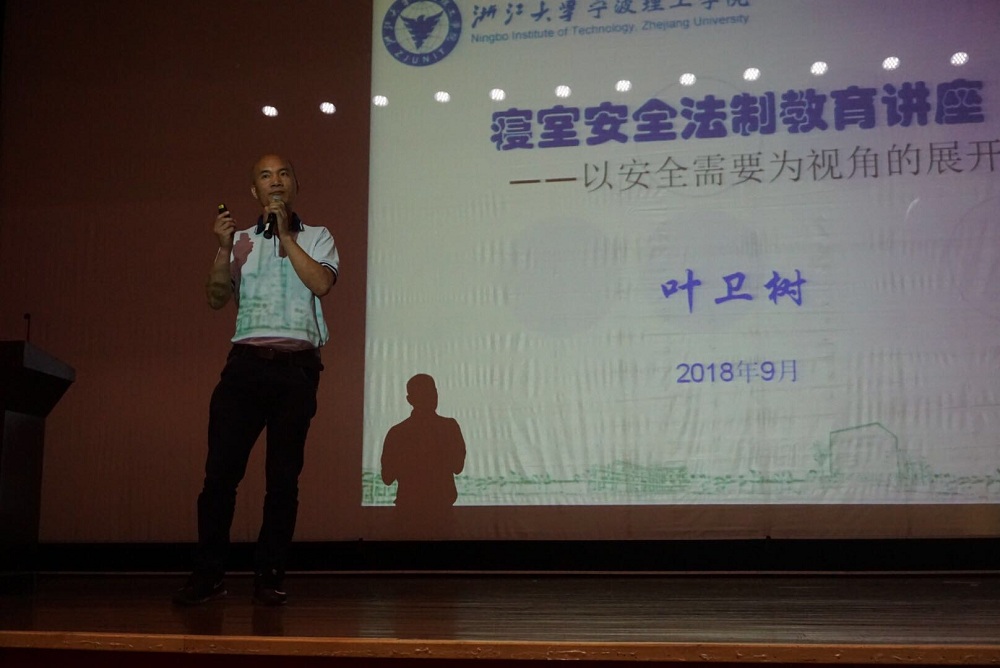 其次,法政公司辅导员李老师主要对公司的评奖评优和员工违纪处分实施办法进行了详细说明。讲座的最后,由保卫处副处长叶老师对新生们进行人生安全教育讲座。叶老师的讲座主要包括近年常见的“面对面诈骗”、“非接触诈骗”。以身边真实事例,叶老师运用生动风趣的语言为大家讲述了关于安全防范的知识,通过PPT图片展示,分析事因,告诫大家如何防范身边的诈骗、偷窃行为,对于同学们的安全也提出了由衷的忠告。