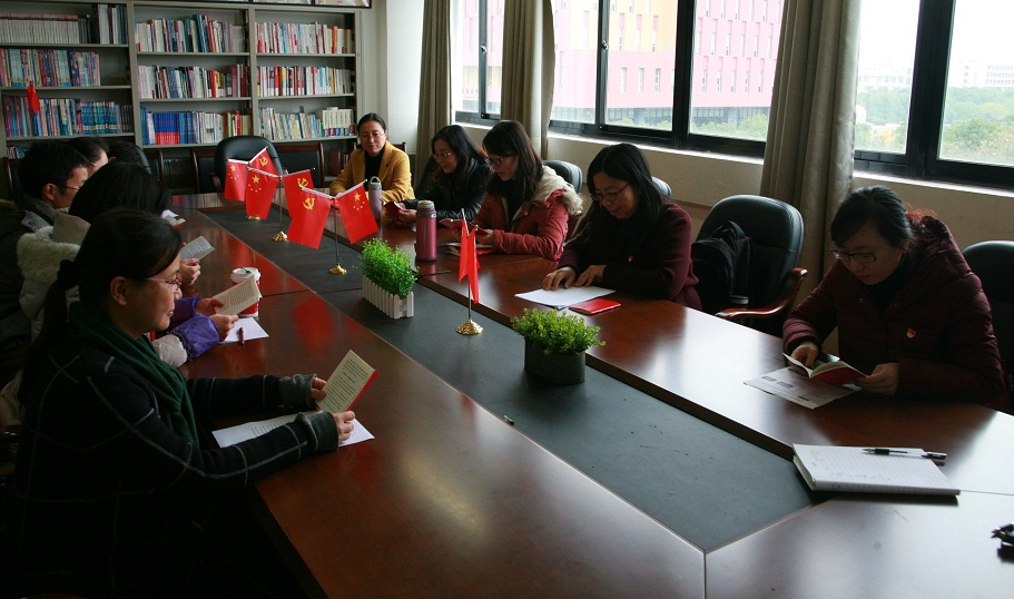 本次主题党日活动的重点为学习十九大新思想,讨论十九大关键词的英文翻译及宣传。支部书记韩雪峰老师主持了本次活动。她认为十九大报告中出现的一些关键词语,能帮助我们更加深入地学习体会十九大的新思想。我们基层党员尤其是一线大学英语教师党员,应该结合本职工作,既自我学习,又能在课堂宣讲,通过这一形式,增加师生共同的文化自信,传播中国文化,同时传播中国正能量。王欢老师分享了中国特色话语对外翻译标准化语料库,译文来源为《习近平谈治国理政》。卜霄艳老师谈到了全面建设社会主义现代化强国的内涵。宋岩老师提到了三共原则的英文翻译。张萍老师分享了她对于“初心”的理解和翻译。孙永田老师谈到了“四个意识”的英译,孙娟老师分享了“一带一路”这个热门词汇。林晶晶老师认为应该让更多的员工了解我们的党和我们的中国梦,外语教师的优势就是让世界知道中国、了解中国。王磊老师分享的关键词是“五位一体”。王雪芹老师则对工匠精神的英译进行了分析。虽然是冬日,但是会议室的气氛热烈而活泼,本次主题党日活动不仅增加了党员的团队凝聚力,而且帮助各位党员教师深入理解和学习十九大精神。