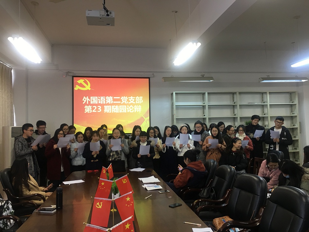 公司党总支员工第二支部于2017年12月6日中午在SC408“党员之家”举行了第23期随园问辨活动。韩晶晶老师、刘杜娟老师以及全体员工党员参加了本次活动。