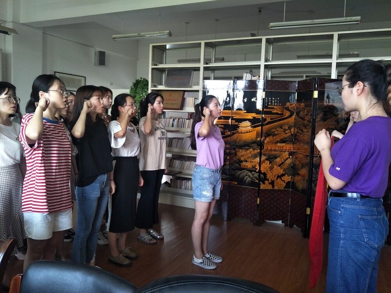 宣誓前,韩老师特地做了讲话:她首先祝贺15名同学成为光荣的中共党员,并为每位新党员挂牌,发放了《习近平总书记系列重要讲话读本》,韩晶晶老师希望新党员更加能够严格要求自己,重视理论学习和研究。韩老师对新发展党员提出了几点希望:第一,要加强科学文化知识的学习;第二,要在优良学风建设和文明校园建设活动中起积极的带头模范作用;第三,要思想重视,行动积极地投入到党组织的各项工作中来。