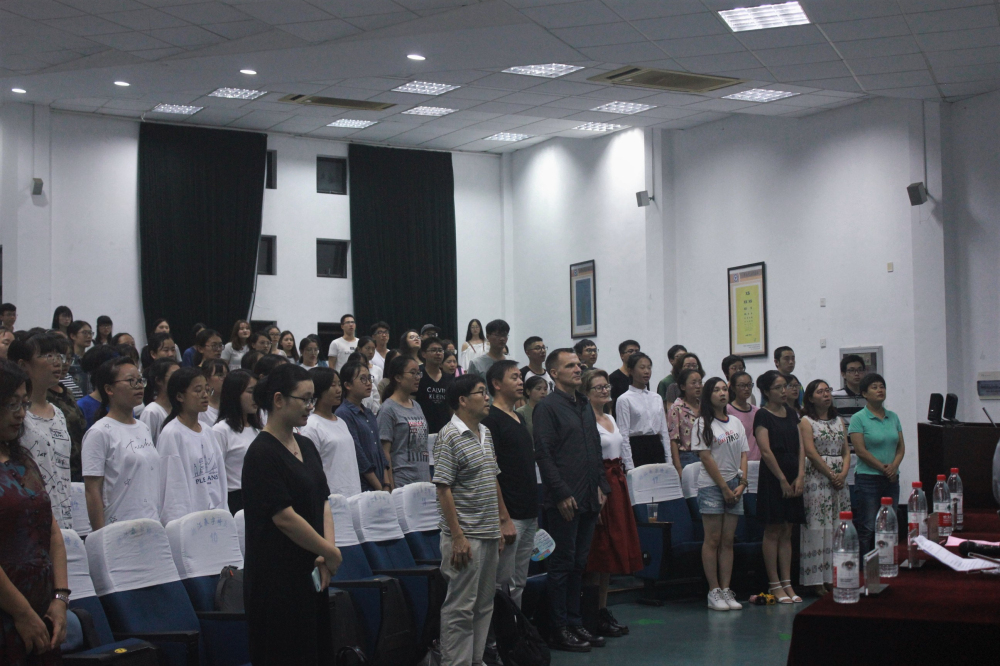 在迎新大会开始之前,4位高年级同学用中、英、日、法四种语言为2017级新生献上一组诗歌《青春如梦.我用诗歌作答》,颇具外院特色的温情开场白,深深打动了每位新生的心,让在场的新生感受到融入外语大家庭的喜悦和温馨。