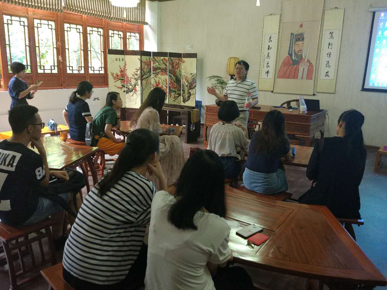 6月28日上午,美国罗切斯特拿撒勒大学英语语言公司经理、亚太办公室主任宋红专教授特意在紧张的行程中抽出时间来和公司员工交流,意为促进和公司的合作项目。公司外事秘书肖琪老师,项目协调人曹雅娟老师,阮征老师在阳明学堂接待。宋教授为中国员工“如何在美国大学教育中独占鳌”出谋划策,也耐心地为暑期出访各英语国家的员工解答。