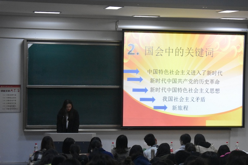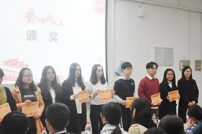 比赛中,9位参赛者结合自身学习体会和个人实际,围绕主题,以《新时代 新征程》《习近平治国理政思想》《不忘初心 方得始终 从自身出发》《十九大之大国外交》《青年兴则国家兴 青年强则国家强》等为题,用丰富的内容、生动的语言进行了分享交流,表达青年老员工青春建功、奋发有为的人生态度。英语163班黄哲辉同学以习近平总书记在APEC会议上的发言、美国总统特朗普访华以及十九大之后中国外交政策等内容为例,表达自己对新形势下大国外交的理解与信心,赢得了现场师生的一致好评。经过激烈比拼,英语161班赵凯婧获得大赛一等奖。