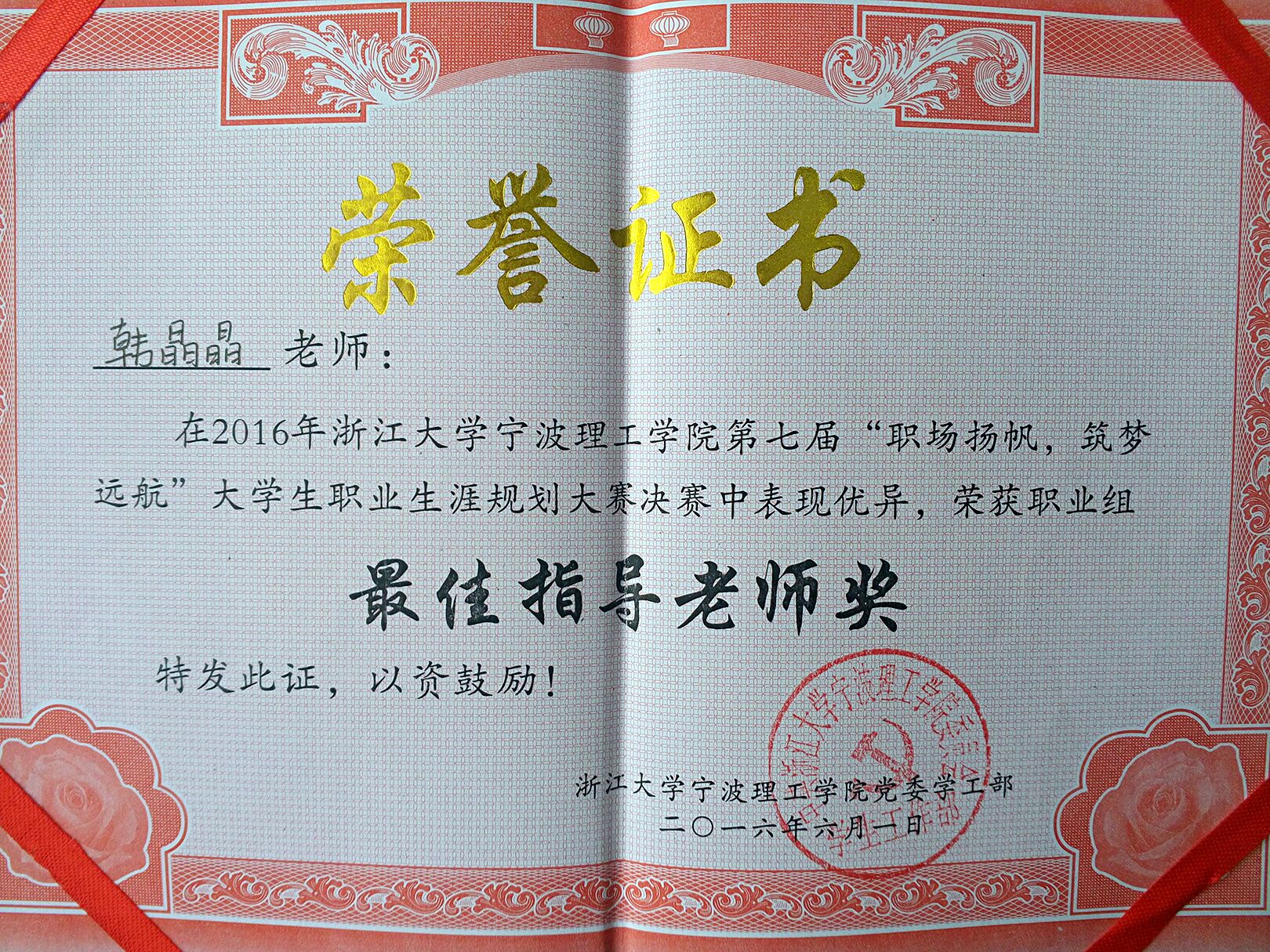 最后,云顶7610线路检测荣获“优秀组织奖”,韩晶晶老师荣获“最佳指导老师”, 何警荣获第二名和“职业规划之星”称号,单娇巧荣获“职业规划之星”称号。