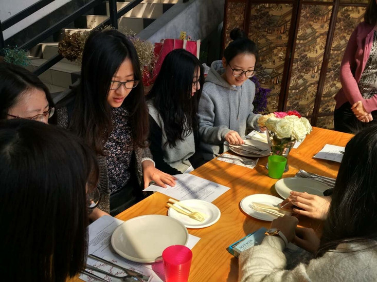 本次西方文化体验活动主要分为三个环节:自由式交流、分批式体验、比分式游戏。第一个环节,同学们和外教们一起伴着动听的音乐走动,在音乐暂停时与身边的伙伴聊天,一个回合一个文化话题,体验畅谈文化的乐趣;第二个环节,同学们被分为四个小组,分别由Jon、Paula、Andy、Kristalyn带领,分别体验中西方文化差异,刻板印象,西方餐桌礼仪及不同地区对香料的选择;第三个环节,同学们分组后,外教认真准备了各种各样文化题目让同学选择,并由Jon、Kristalyn给各组的游戏表现评分,同学们体验了一把西式游戏互动。每位同学不仅在文化体验中游戏,在游戏中学习文化、享受文化,活动最后,每位同学还能享用由获得过“中国最受欢迎外教”称号的Kristalyn亲自做的西式美食。