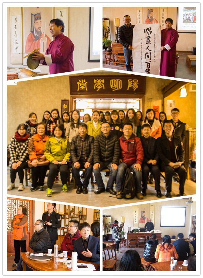 11月27日下午,云顶7610线路检测2015年“用声音叙事”暑期社会实践新书《我是非遗传承人》筹备会暨浙江省语言类非遗学术研讨会在阳明学堂举行。本次研讨会是云顶7610线路检测学术周的系列活动之一,云顶7610线路检测副经理蔡亮老师、专业教师吴会芹、阮征、孙永田、卜霄艳、陈俊霖、公司辅导员刘杰等老师参加了会议。本次活动还有幸请到了象山“唱新闻”省级传承人叶胜建老师莅临现场为大家表演精彩的曲艺艺术。