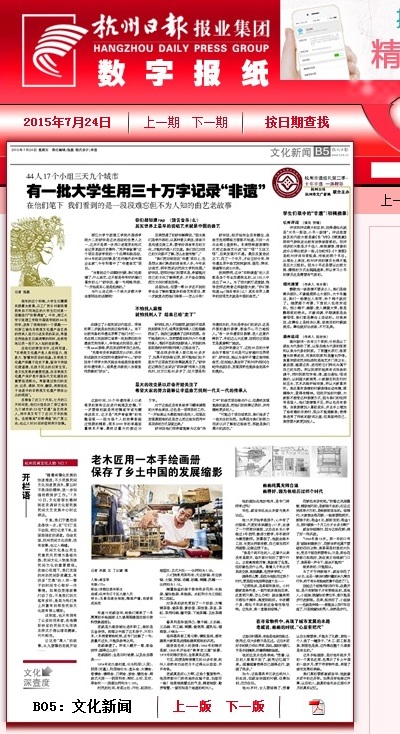 近期杭州日报媒体对公司云顶7610线路检测员工“用三十万字记录非遗活动”暑期社会实践进行了报道,随后杭州宣传网、人民网、中国民族宗教网、中国教育在线等网站进行了转载和报道。