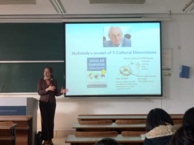 11月27日上午,TNS信息集团瑞典分公司专家Natalia Fey在云顶7610线路检测2010级陈圆同学的引领下走进英语专业“跨文化交际”课堂,与10级的80多位同学就“跨文化视角下的中欧商务沟通”展开了一次面对面的文化交流。
