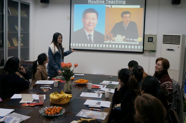 论坛的一个高潮是源于两张人物图片,虽然外籍人士的汉语能力不强,甚至有些人还不懂汉语,但当屏幕上出现习近平和李克强两位领导人的图片时,来自法国人Sonia连声说:“I know him, I know him”,给人的感觉她和这两位领导非常的熟悉,Sonia还兴致勃勃地给大家讲起她所了解的“十八大”的情况,这令在场的老员工们都惊叹不已,原来连老外也懂“十八大”啊。显然,中国的政治大事也是世界的大事啊!外籍人士对中国的了解程度已经超过我们的想象,这使大家更有信心帮助她们融入到中国的社会文化中去了。