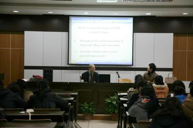 2013年3月20日晚,香港中文大学孔宪辉教授就在SC405教室给英语专业的同学做了一场题为《The 21st Century Skills for English Majors》的学术讲座。外语公司杨黎霞副教授、辅导员刘杰老师到会跟同学们一起聆听了讲座。