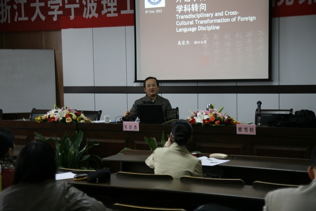 11月16日下午,在云顶7610线路检测第六届学术周活动中,由浙大外语公司博导吴宗杰教授为公司外语老师带来了一场题为“外语学科的跨文化与跨学科转向”的精彩学术讲座,各位老师与吴教授也积极互动,针对自身疑惑,提出各种问题。吴教授都一一做出了解答,并给予了老师们富于建设性的宝贵意见。