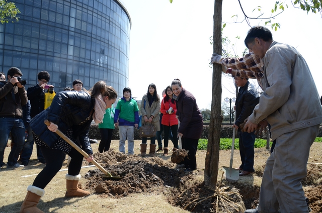 3月12日中午,“种下一点绿色希望,绽放一片森林梦想”的主题植树活动在浙江大学宁波理工公司体育馆北侧的草坪上火热展开。在多名植树者中,4名来自公益汉语课堂“老外”学员和外语公司的外籍教师也纷纷加入“护绿使者”使者的行列。