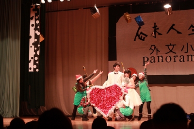 至此,在团学社工作人员的共同努力下,“百味人生”外文小品大赛顺利结束,为期一个月的外语文化艺术节也落下了帷幕。在整个艺术节期间外语公司的师生积极参与,为大家带来了“班班有歌声”——外文歌曲大赛、外文配音大赛、外文报纸展示、外文小品大赛等活动,均取得了很大的成功。